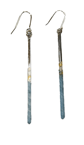 深みのある藍色の和紙に銀箔を施したスリットロングピアス。