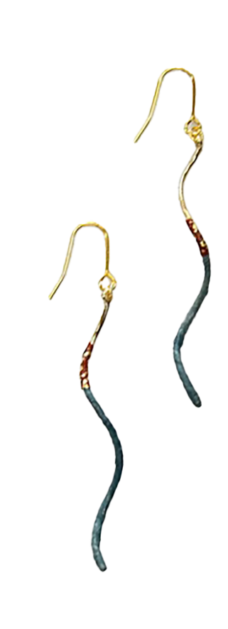 深みのある青の和紙に、鮮やかな朱色と金箔が織りなすスリットスパイラルピアス。職人の手によって丁寧に仕上げられた螺旋状のフォルムが、光を受けて優雅に輝き、動くたびに繊細なきらめきを放ちます。深い青が落ち着きと高級感を醸し出し、朱色と金箔がアクセントとなって一層の華やかさを演出。和紙独自の柔らかな質感と、銀箔の繊細な光沢が絶妙に調和し、上品でありながらも軽やかな印象を与えます。